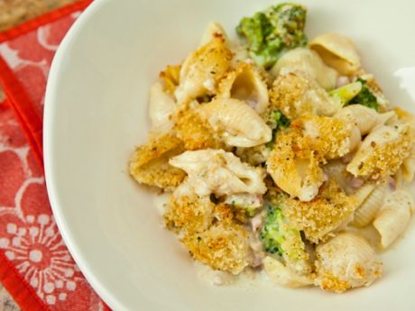 W rondlu roztop masło i dodaj mąke. Ugotuj brokuły na parze. Delikatnie podsmaż, mieszając aż zrobi się z tych dwóch składników jednolita masa. Powoli wlej mleko, cały czas mieszaj mieszankę Gotuj na średnim ogniu, aż sos będzie kremowy i gęsty,mieszaj go często. Zmniejszyć ogień do minimum, a następnie dodaj ser Fontina i kozi ser - wymieszaj dobrze. Dopraw solą i pieprzem i nadal mieszaj, aż sos będzie bardzo gładki. Między czasie kiedy sos dochodzi w dużym garnku w lekko osolonej wodzie, ugotuj makaron Mamma Mia muszelki usuwając go 2 - 3 minuty wcześniej niż zalecany czas gotowania. Makaron przecedzić, dodaj brokuły ugotowane na parze. Dodaj sos i wymieszaj całość z makaronem z brokułami Przełóż wszystko do przygotowanego wczęsniej naczynia żaroodpornego. Piec makaron na złoty kolor około 15 do 20 minut. Międzyczasie w małej misce wymieszaj składniki na posypkę , podsmaż lekko, a następnie kiedy makaron z serem i brokułami będzie gotowy posyp górę makaronu. Gotowe.Smacznego.