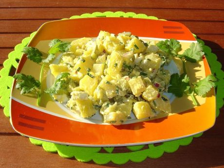 ✅ SAŁATKA : ziemniaki ugotować w mundurkach, ostudzić, obrać i pokroić na nieregularne kawałki. Następnie ziemniaki umieścić w odpowiednio dużej misce, dodać cebulę, ogórek, jajka, szczypiorek i doprawić do smaku. Całość dokładnie, delikatnie z sobą wymieszać.