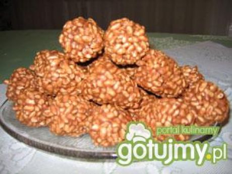 W rondelku należy rozpuść masło, dodać cukier, kakao i wodę. Następnie dodaj krówki i mieszaj aż masa stanie się jednolita oraz gładka. Masę zdejmij z ognia. Potem ciepłą masę przełóż do miski i połącz z mlekiem w proszku. Wsyp ryż i dokładnie wymieszaj. Masę nabieraj łyżką i formuj w dłoniach niewielkie szyszki. Ułóż na papierze do pieczenia i odstaw w chłodne miejsce do zastygnięcia.