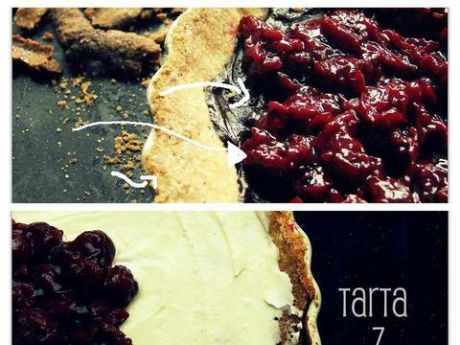 Składniki na spód ciasta wymieszać ze sobą. Schłodzone masło drobno posiekać, połączyć z pozostałymi składnikami. Zagnieść gładką kulę, rozpłaszczyć ręką, zawinąć w folię spożywczą i włożyć na min. 30 min do zamrażalnika. Po wyjęciu masę rozwałkować na stolnicy posypanej mąką. Średnica ciasta ma być większa od formy do pieczenia. Formę nasmarować tłuszczem, na wałku przenieść ciasto, wyłożyć nim dno i brzegi formy, docisnąć, odciąć nadmiar ciasta (przejeżdżając po wierzchu naczynia wałkiem). Dno ciasta gęsto ponakłuwać widelcem (lub wyłożyć papierem do pieczenia i obciążyć grochem). Piec w temp 180'C przez 20-25 min. (do zarumienienia). Upieczone ciasto wyjąć z piekarnika i schłodzić.