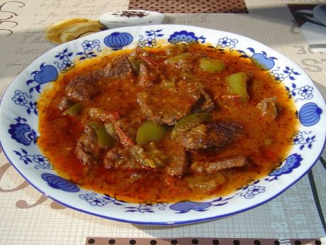 ✅ Po odparowaniu płynu z mięsa dodać cebulę i czosnek i smażyć, aż cebula się zeszkli. Następnie dodać zieloną paprykę, koncentrat pomidorowy, pomidory ( puree ), pokrojone pomidory i gotować przez około 2 minuty. Później całość doprawić chili-pul biber, kminem rzymskim, tymiankem, solą i pieprzem.