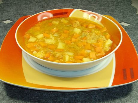 ✅ Na patelnię na rozgrzany tłuszcz wrzucić cebulę, seler naciowy, marchewkę, czosnek, tymianek i smażyć przez około 3 - 4 minuty. Następnie wsypać soczewicę, sol, pieprz, wlać bulion warzywny, dodać koncentrat pomidorowy i zalać gorącą wodą. Później dodać batat, ziemniaki i zupę gotować, aż warzywa zmiękną.